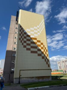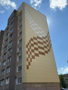 Данный фасад выполнен в соответствии с графическим паттерном города